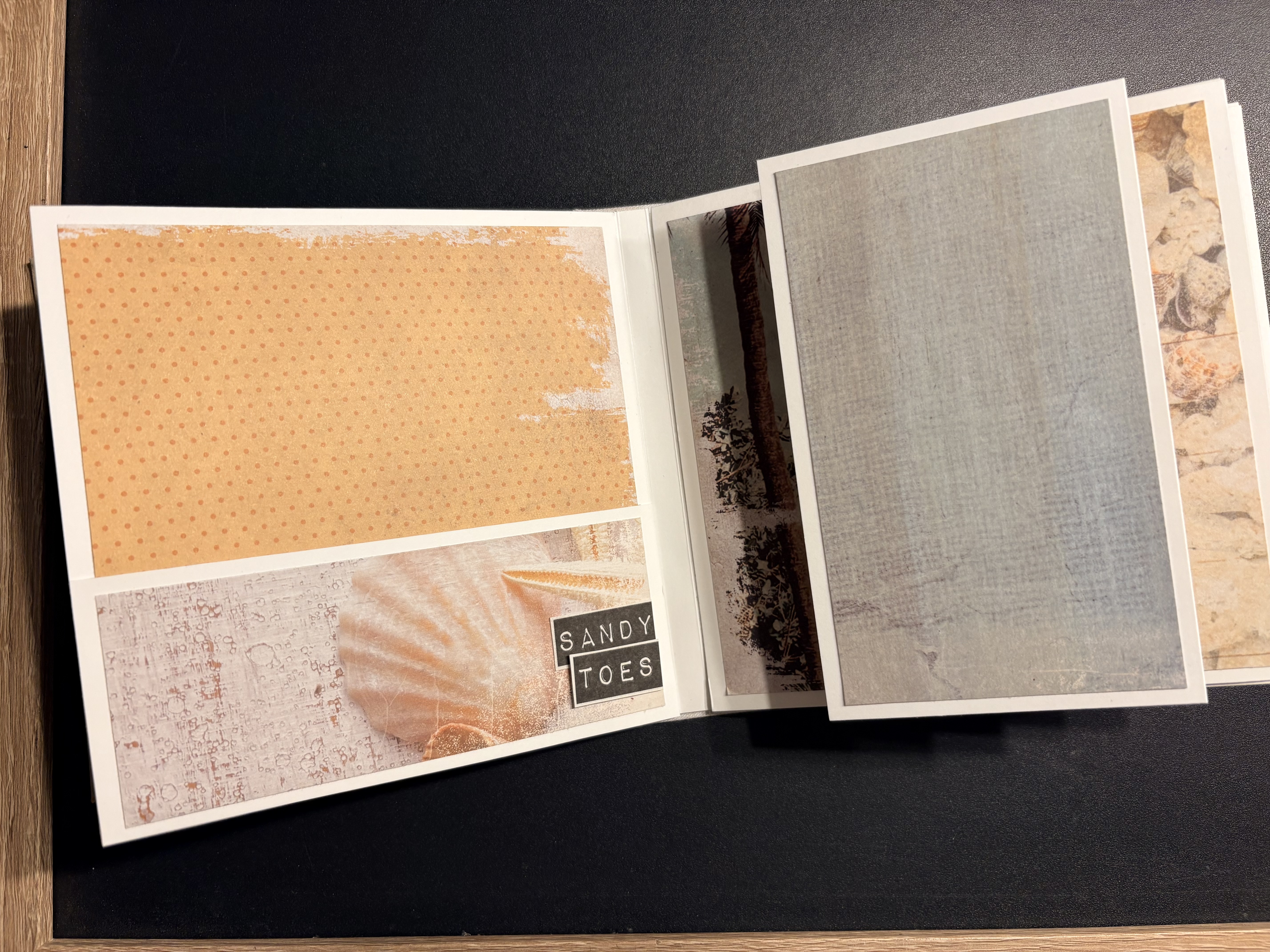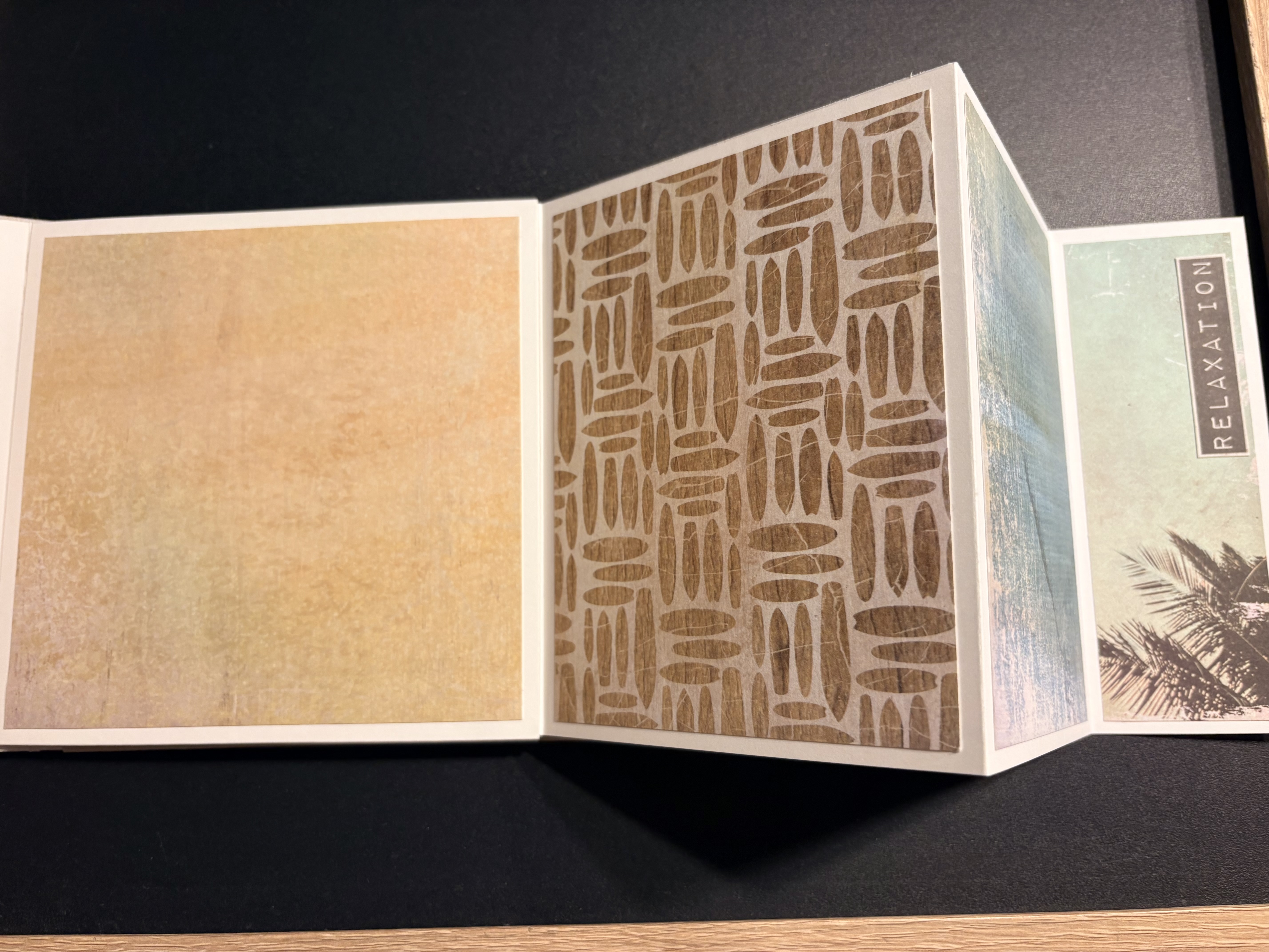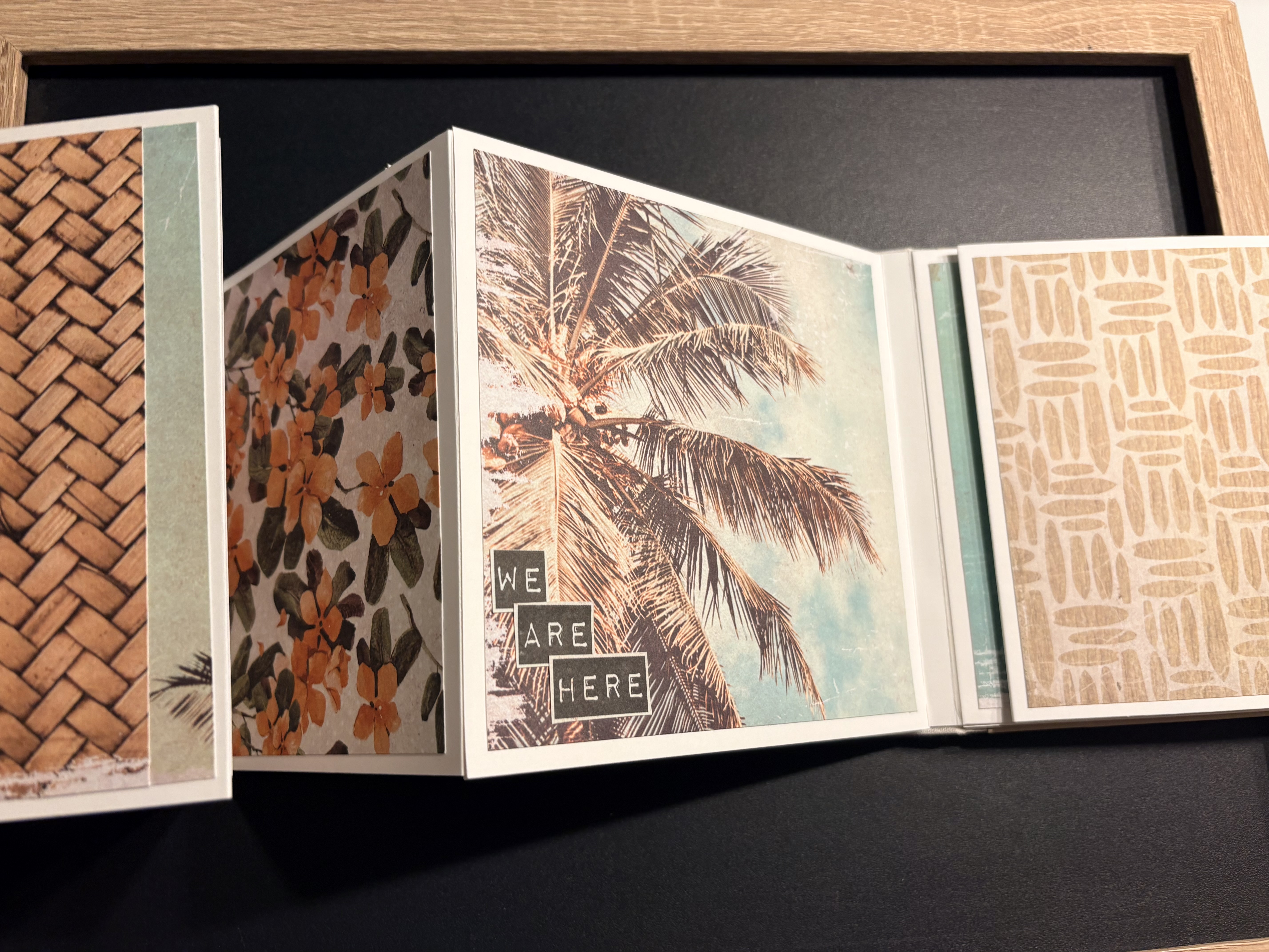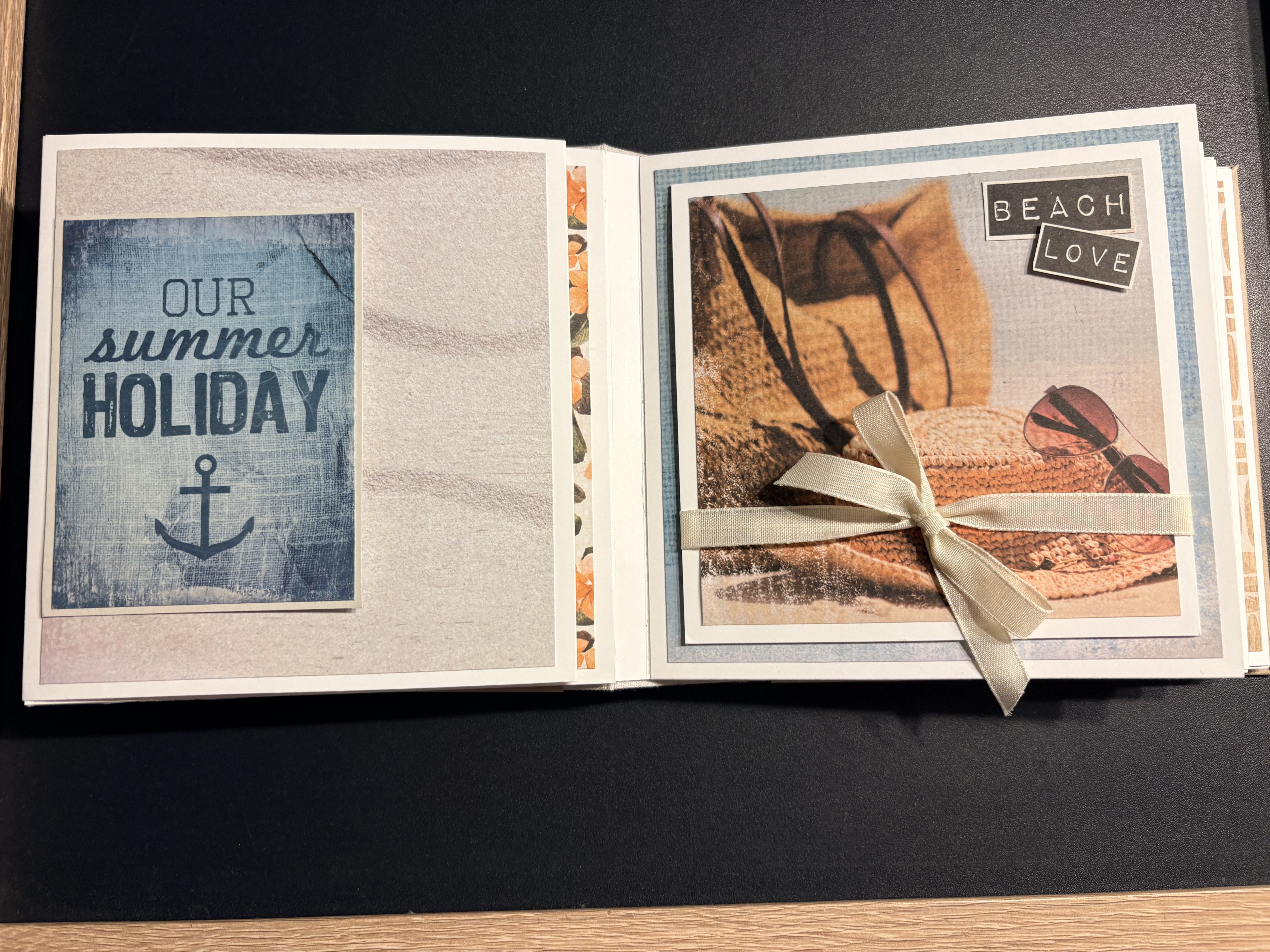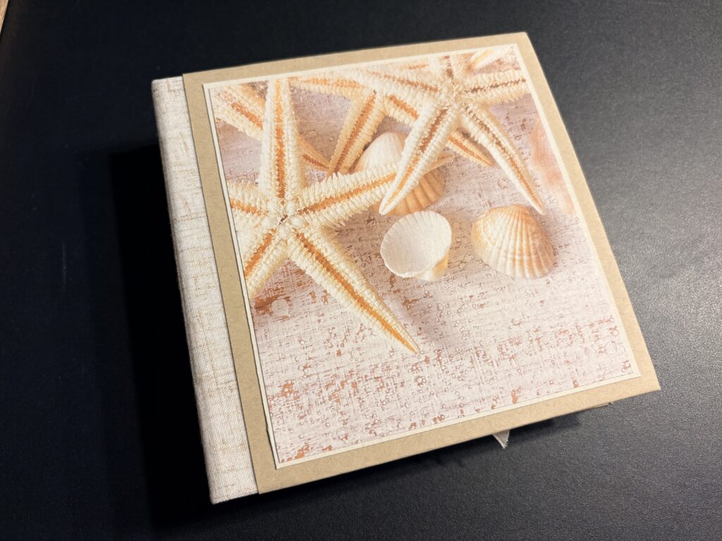 Die Frau eines lieben Kollegen feierte vor kurzem ihren 50. Geburtstag. Auch seiner steht kurz vor der Tür und daher gönnen sie sich heuer einen Urlaub auf den Malediven. Um das Geschenk entsprechend zu überreichen, durfte ich dieses hübsche Minialbum anfertigen samt passender Glückwunschkarte zum runden Geburtstag. Ich habe passend zum Papier in Savanne gearbeitet, außerdem mit Graupappe und Buchbindeleinen. Ich hoffe sie hat sich darüber gefreut und es werden viele unvergessliche Momente Platz darin finden. Vielen Dank für diese schöne Bestellung!