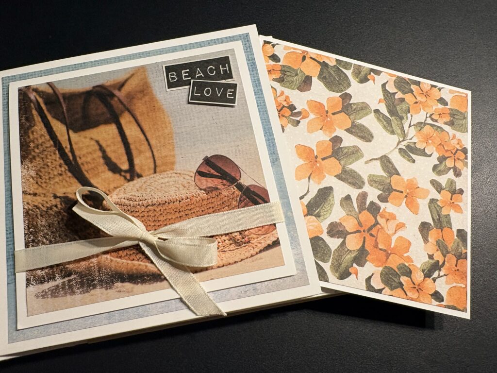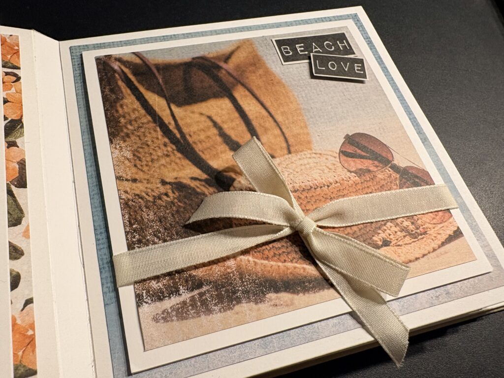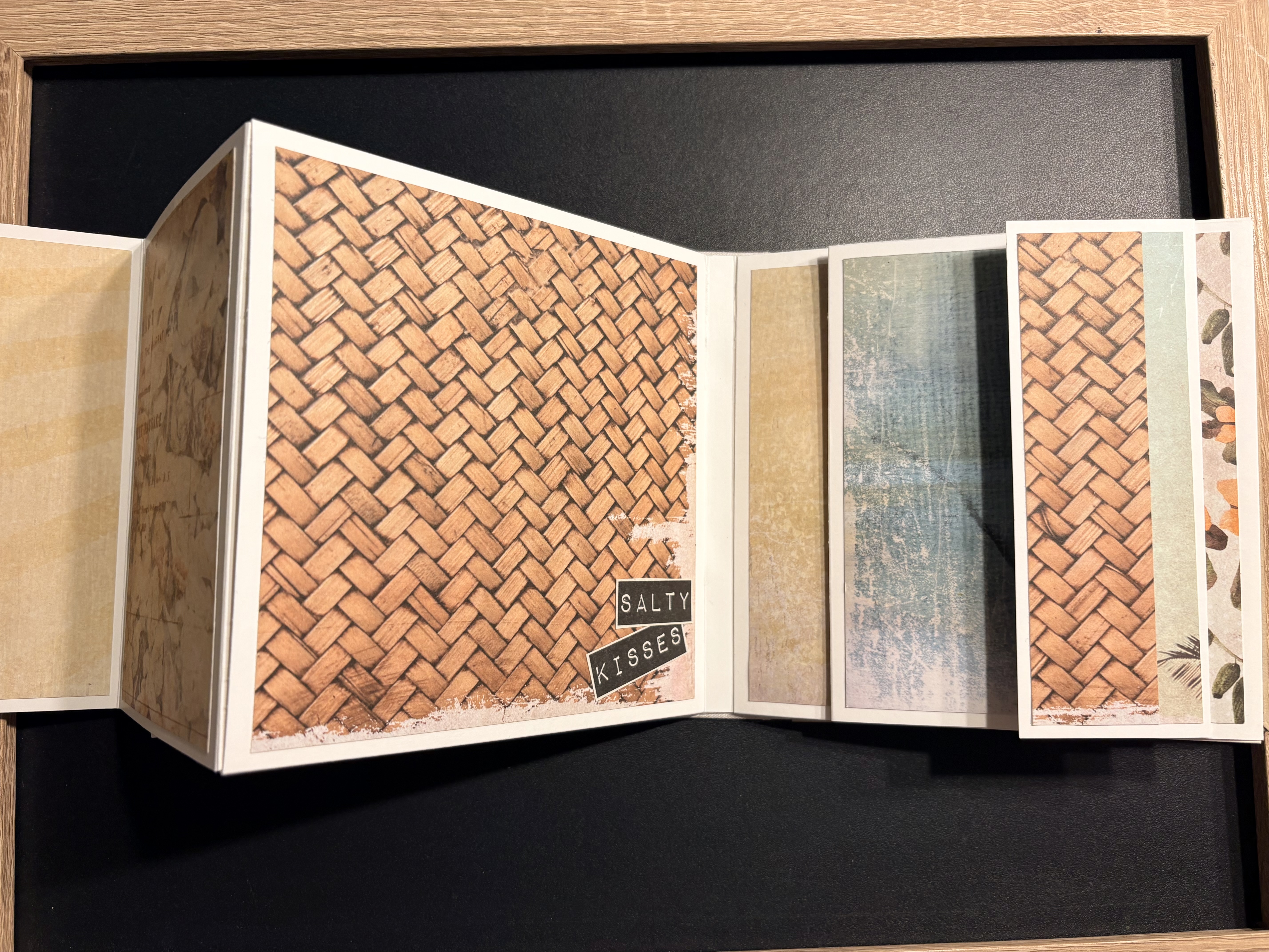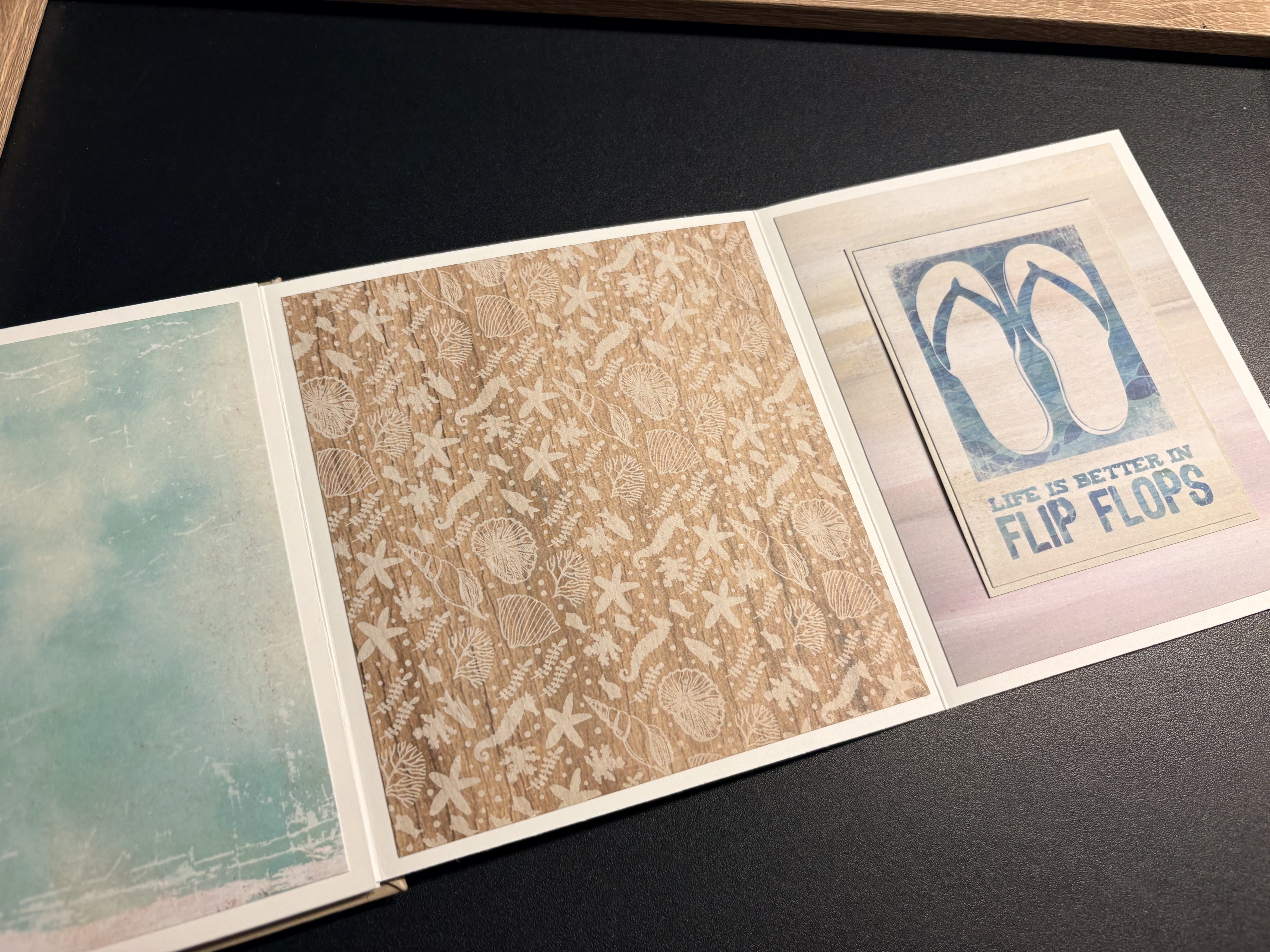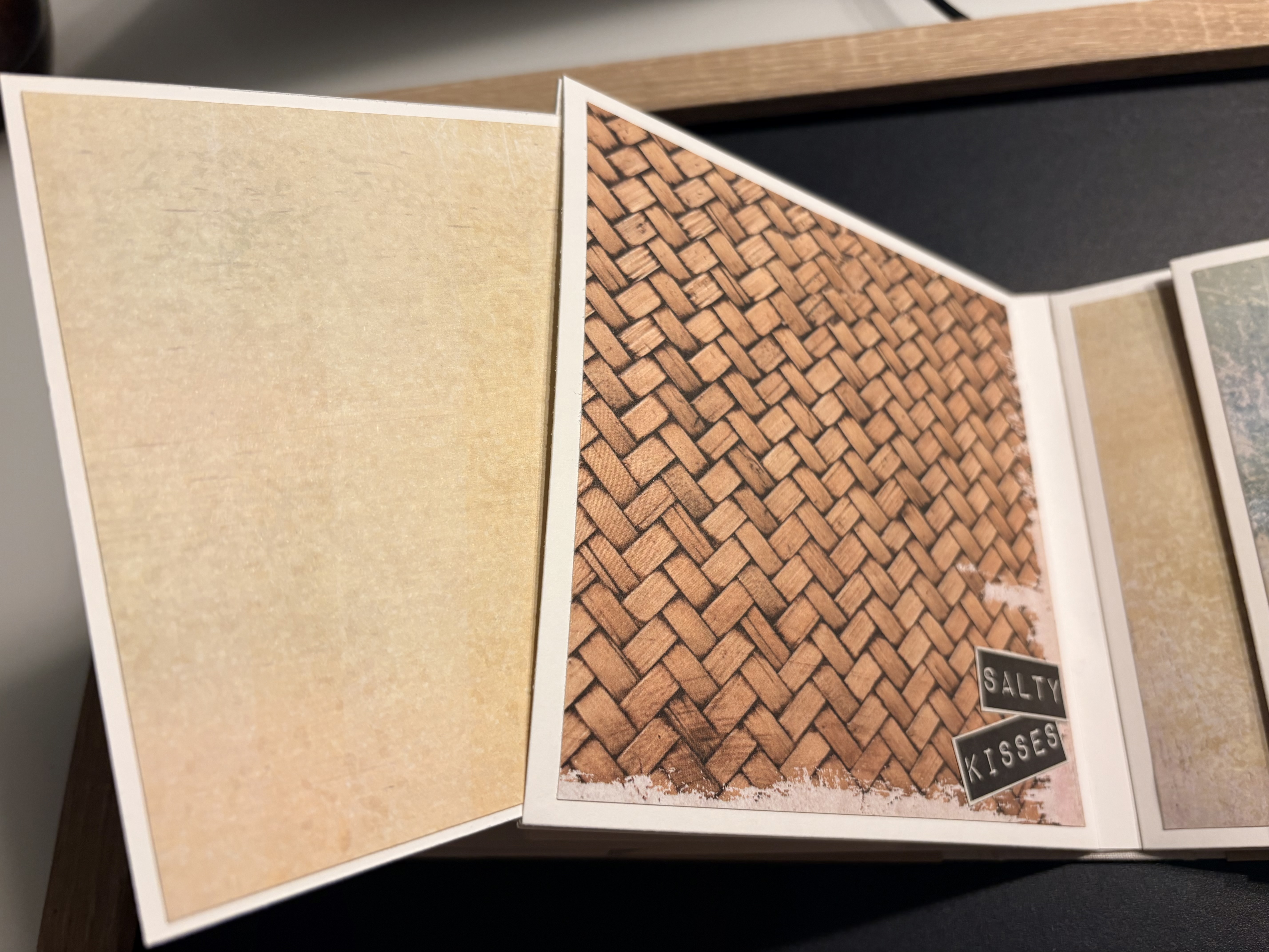 Die Frau eines lieben Kollegen feierte vor kurzem ihren 50. Geburtstag. Auch seiner steht kurz vor der Tür und daher gönnen sie sich heuer einen Urlaub auf den Malediven. Um das Geschenk entsprechend zu überreichen, durfte ich dieses hübsche Minialbum anfertigen samt passender Glückwunschkarte zum runden Geburtstag. Ich habe passend zum Papier in Savanne gearbeitet, außerdem mit Graupappe und Buchbindeleinen. Ich hoffe sie hat sich darüber gefreut und es werden viele unvergessliche Momente Platz darin finden. Vielen Dank für diese schöne Bestellung!