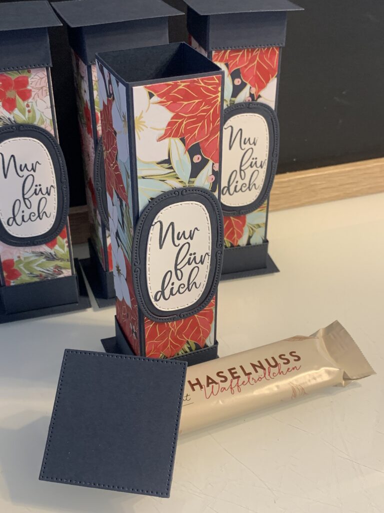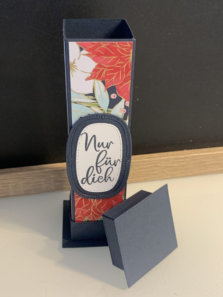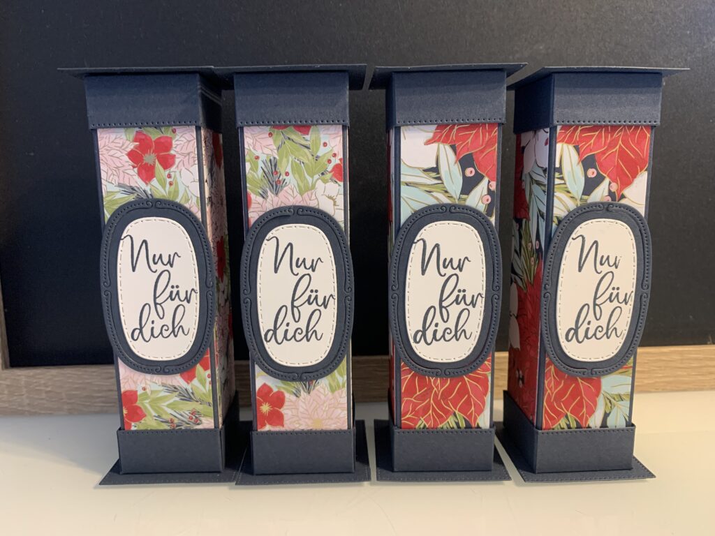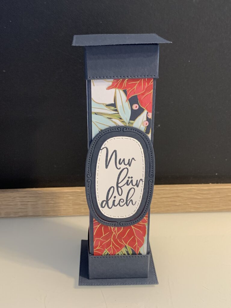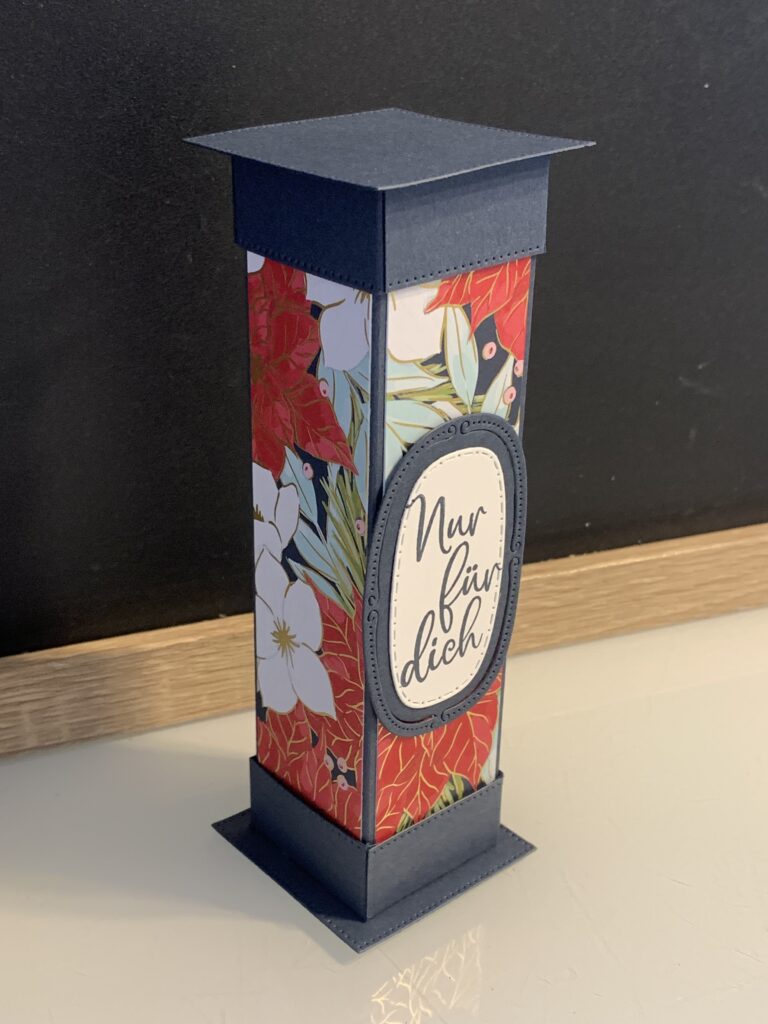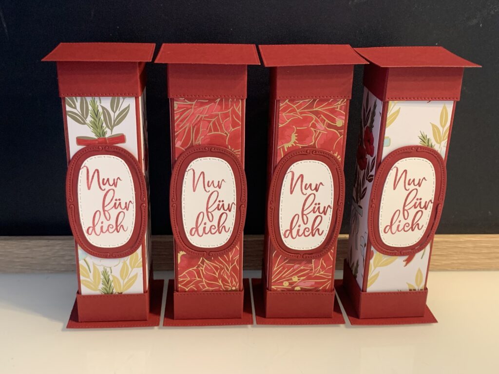 Diese Säulenboxen habe ich für einige meiner Kund:innen angefertigt und auch für meine Septemberaktion – ab 60 EUR Stampin‘ Up! Bestellwert bekommt ihr nämlich 20 Anleitungen zu eurer Bestellung kostenlos dazu und diese Anleitung ist eine davon. Verwendet habe ich für die Boxen Farbkarton in Tiefseeblau, Olivgrün und Chili und dazu das wunderschöne neue Stampin‘ Up! Besondere Designerpapier „Weihnachtstraditionen“. Der Spruch in Tiefseeblau und die Stanzen stammen aus dem Produktpaket „Traditionelle Etiketten“. Ich hoffe ihr habt ganz viel Freude mit der Anleitung!