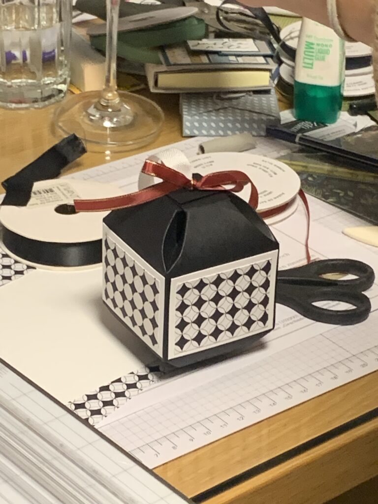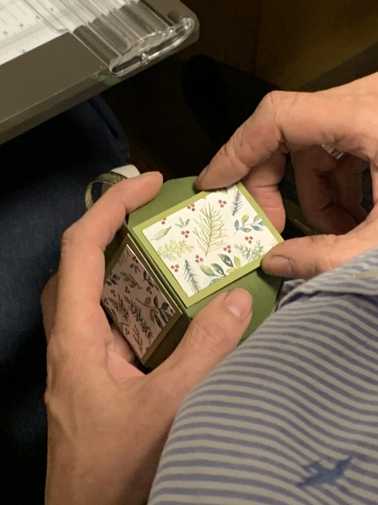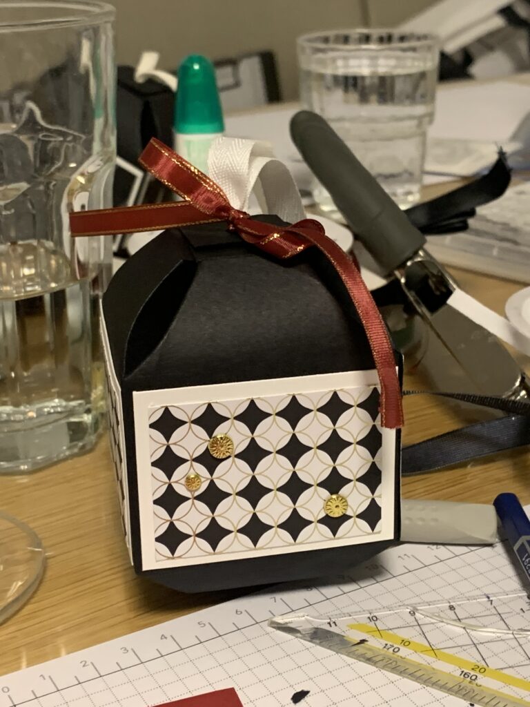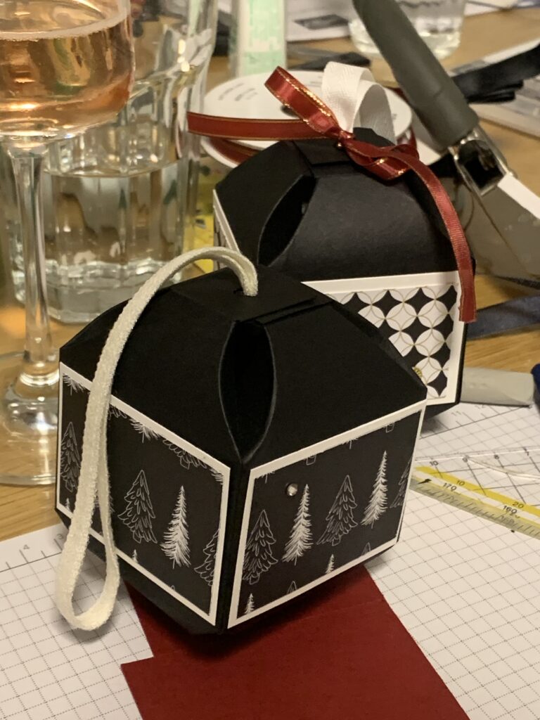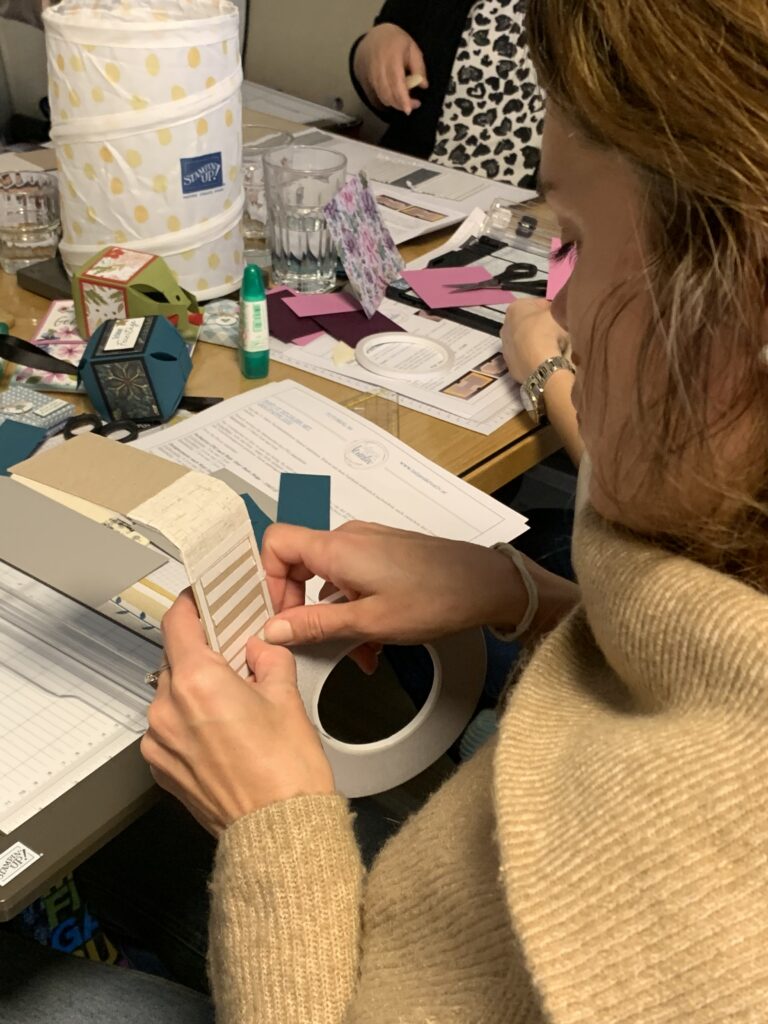 Gestern war ich bei der lieben Michaela zu Gast und gemeinsam mit 7 ihrer Freundinnen haben wir 3 tolle Projekte mit den Produkten von Stampin’ Up! gemacht – ein Post-It’s Büchlein mit Graupappe und Buchbindeleinen, eine Ornamentverpackung und eine Flip-Flap Karte (so habe ich sie zumindest getauft)! Und seht selbst, es sind so tolle Werke entstanden. Habt ihr super gemacht, Mädls!!!