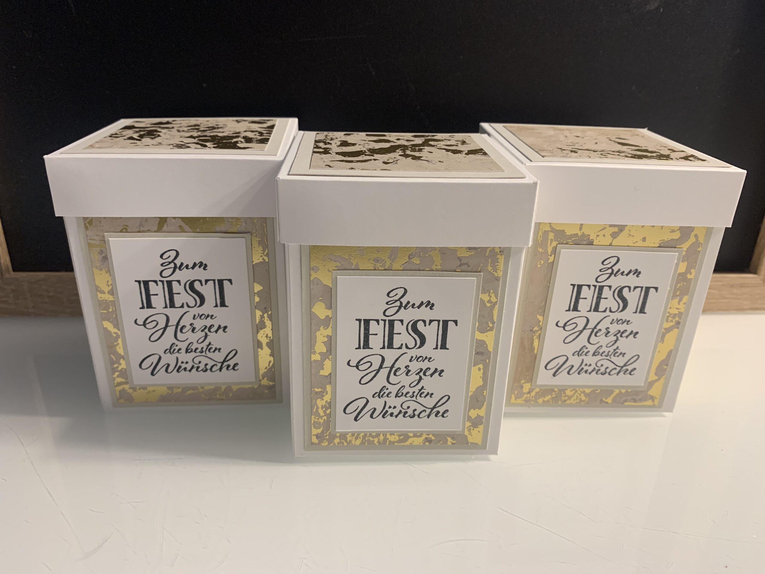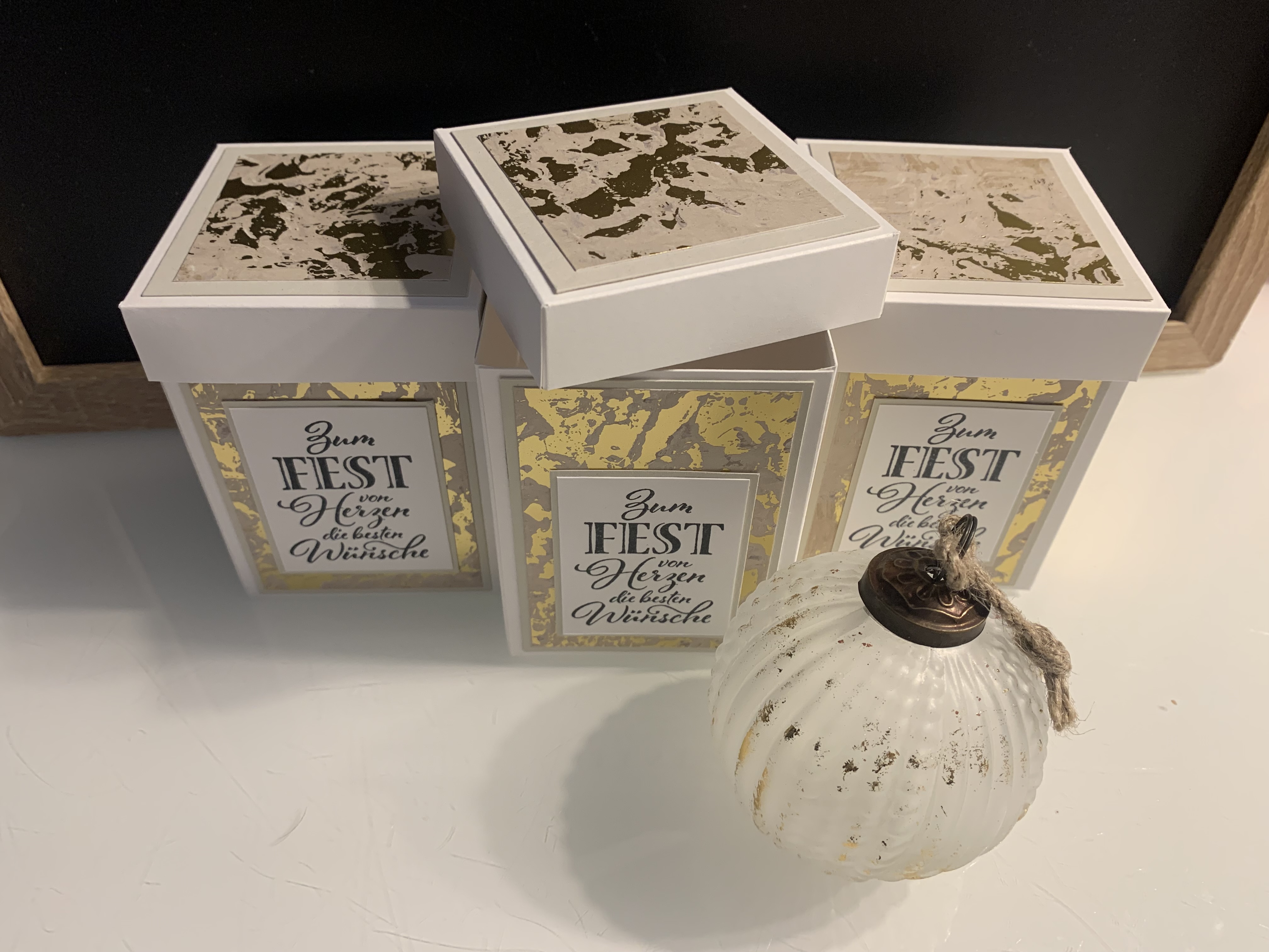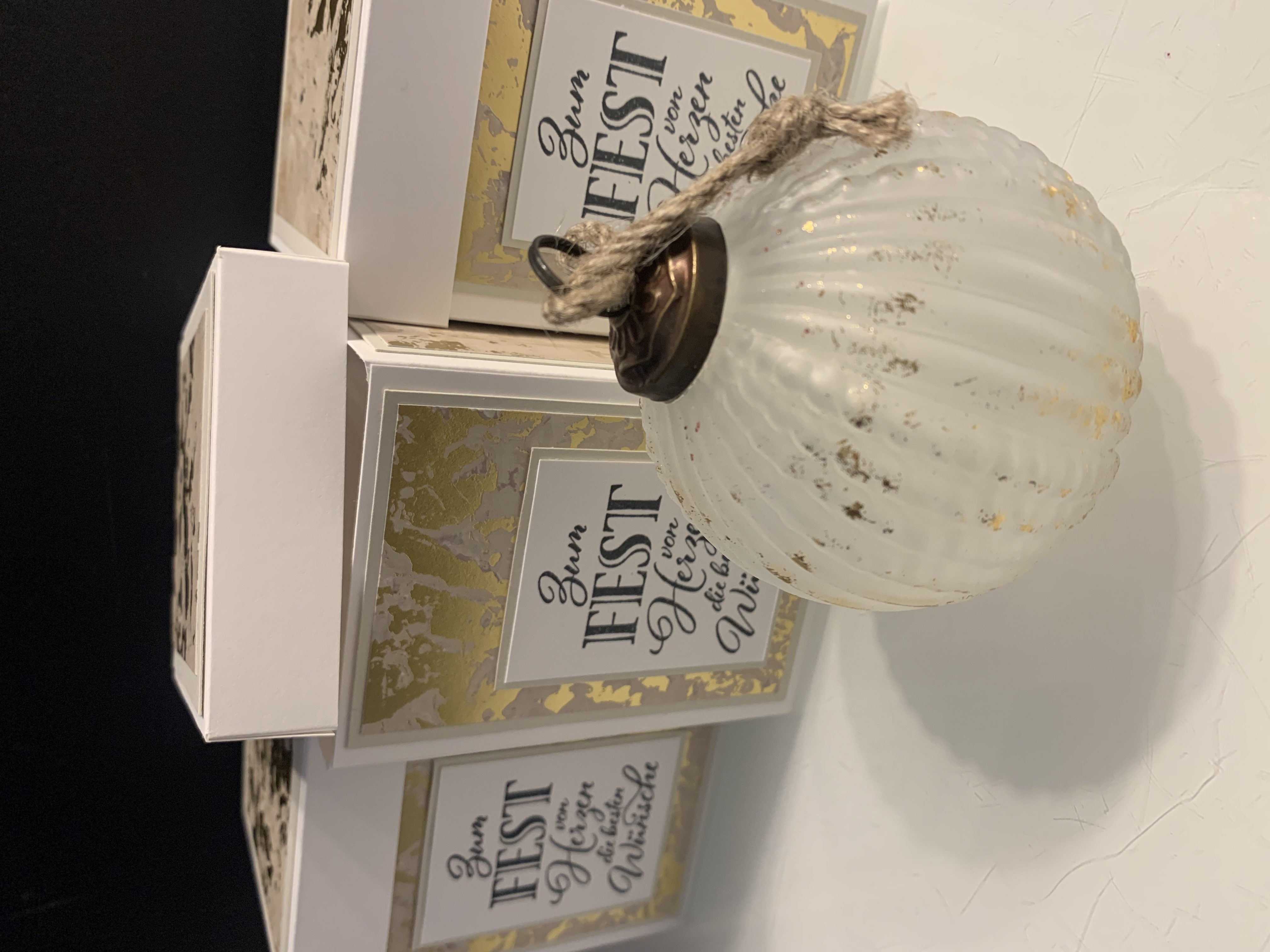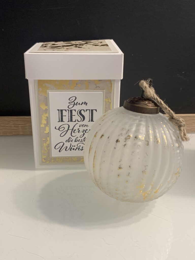 Für liebe Freundinnen habe ich Weihnachtskugeln besorgt und dazu passende Verpackungen gestaltet. Ich habe sie schlicht gestaltet mit Farbkarton in Grundweiß und Basic Beige und dazu das wunderschöne Stampin‘ Up! Designerpapier „Elegante Weihnachtszeit“ in Basic Beige und Gold Metallic kombiniert. Ich hoffe die Damen haben sich gefreut!!