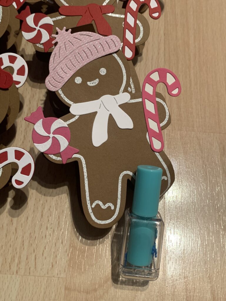 So richtig verspielt wurde es dann bei der lieben Barbara und diesen süßen Lebkuchenmännchen in Pekannuss mit Gartengrün, Glutrot und Wassermelone. So viele schöne Details!! Gefüllt waren diese süßen Boxen mit Leuchtstiften in Nagellackform. Danke dafür!!