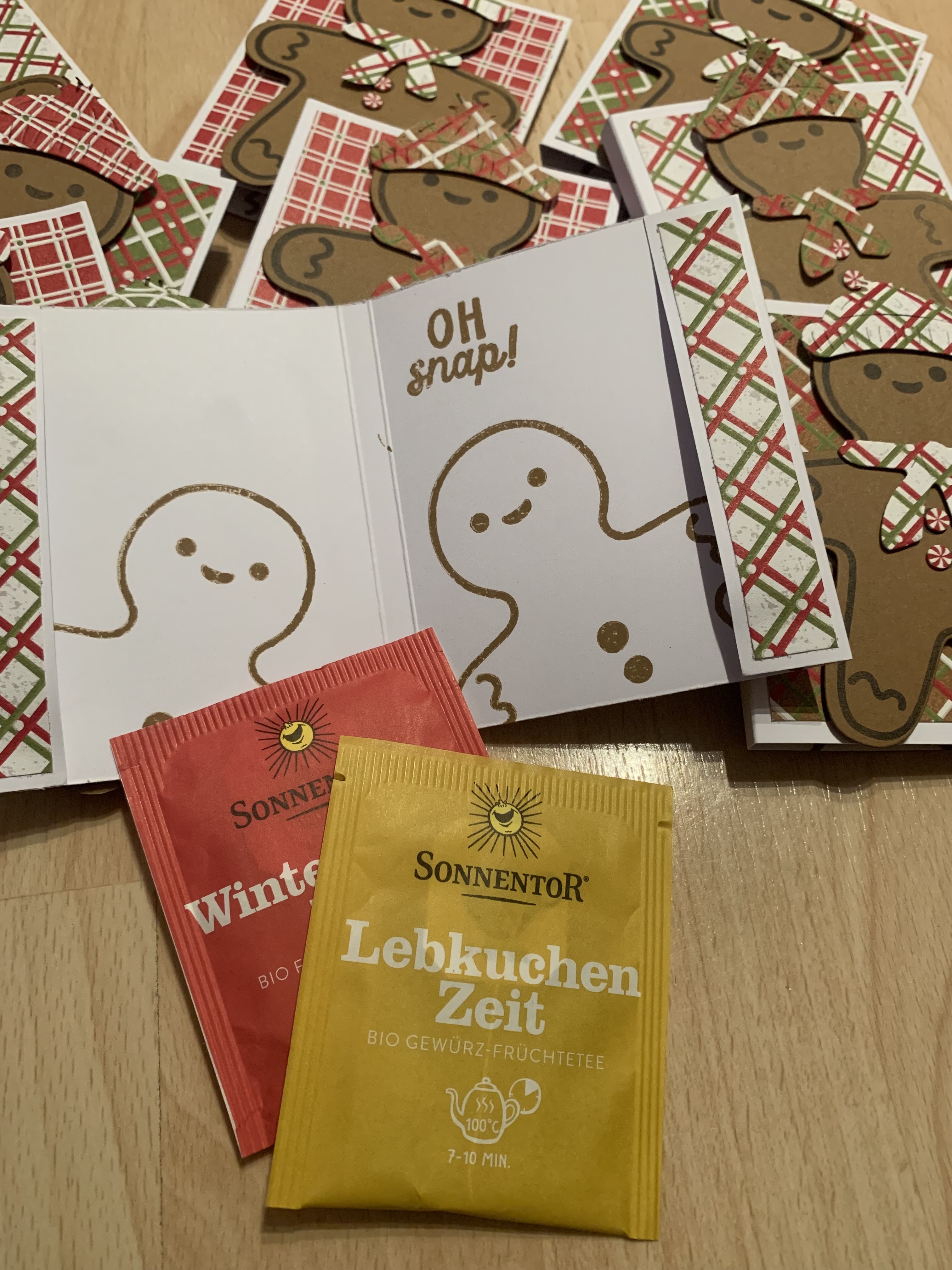 Die Lebkuchenmänner kamen auch bei der lieben Michaela N. zum Einsatz – super lieb als Deckblatt für dieses Teebüchlein gefüllt mit 2 weihnachtlichen Teesorten. Richtig fein in der kalten Jahreszeit! Vielen lieben Dank!