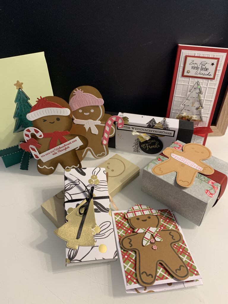 Im 4. Quartal gab es bei mir wieder eine Stampin’ Up! Swap-Challenge – ich habe 2-3 Stempelsets zur Wahl gestellt und mit einem davon sollten in der Anzahl der Teilnehmer:innen Projekte gestaltet und anschließend getauscht werden. Zur Wahl standen die Stempelsets: „Lebkuchenmann“ und „Geschmückter Tannenbaum“. Hier seht ihr einen Überblick – so tolle Projekte haben die Mädls gezaubert!! Schön, dass ihr wieder so zahlreich mitgemacht habt und danke an euch alle!!