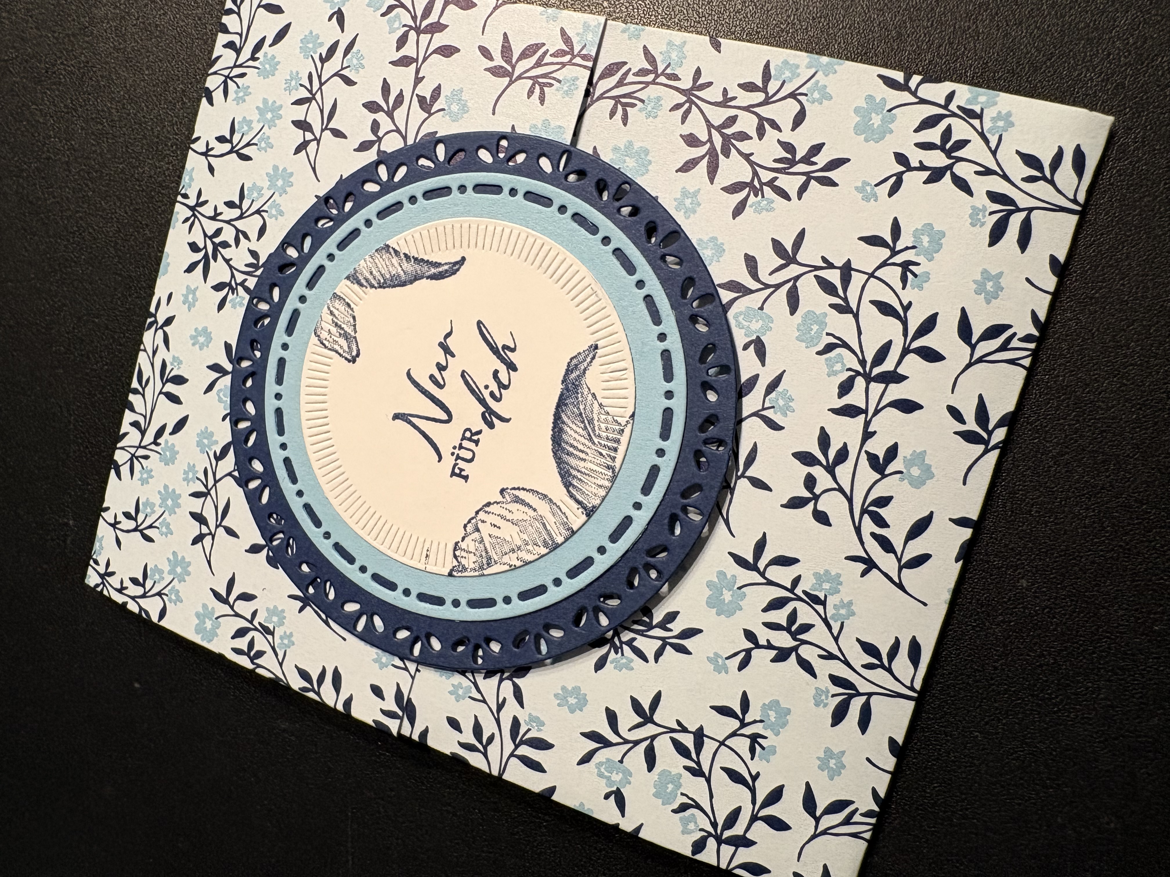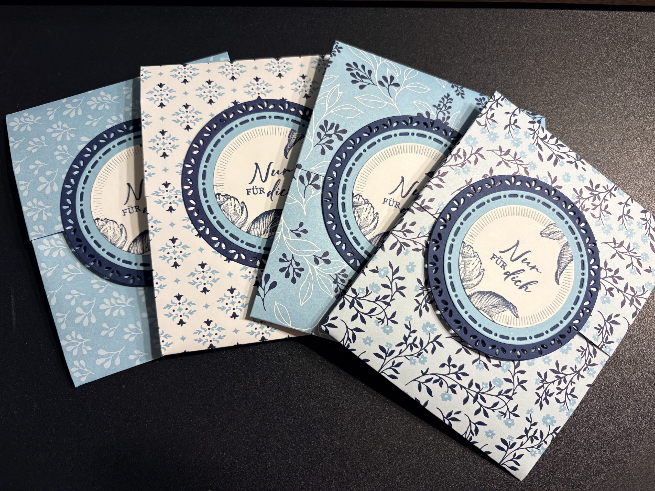 Für Stampin‘ Up! Bestellungen ab 150 EUR gabs im Jänner als kleines Dankeschön von mir eine Packung Glitzersteine hübsch verpackt dazu. Dafür habe ich das Designerpapier „Blumen in blau“ verwendet, das es im Dezember bei Stampin‘ Up! als Produkt des Monats für nur 6 EUR zum Bestellen gab. Die Verpackung per se kommt ganz ohne Kleber aus, sie wird nur ineinandergesteckt. Zur Deko habe ich Kreise aus dem Stanzenset „Naturverliebte Kreise“ in Marineblau, Babyblau und Grundweiß ausgestanzt und mit einem Spruch aus dem Set „Liebe über Alles“ bestempelt. Ich hoffe sie haben sich darüber gefreut.