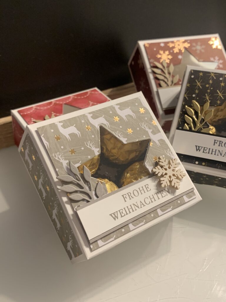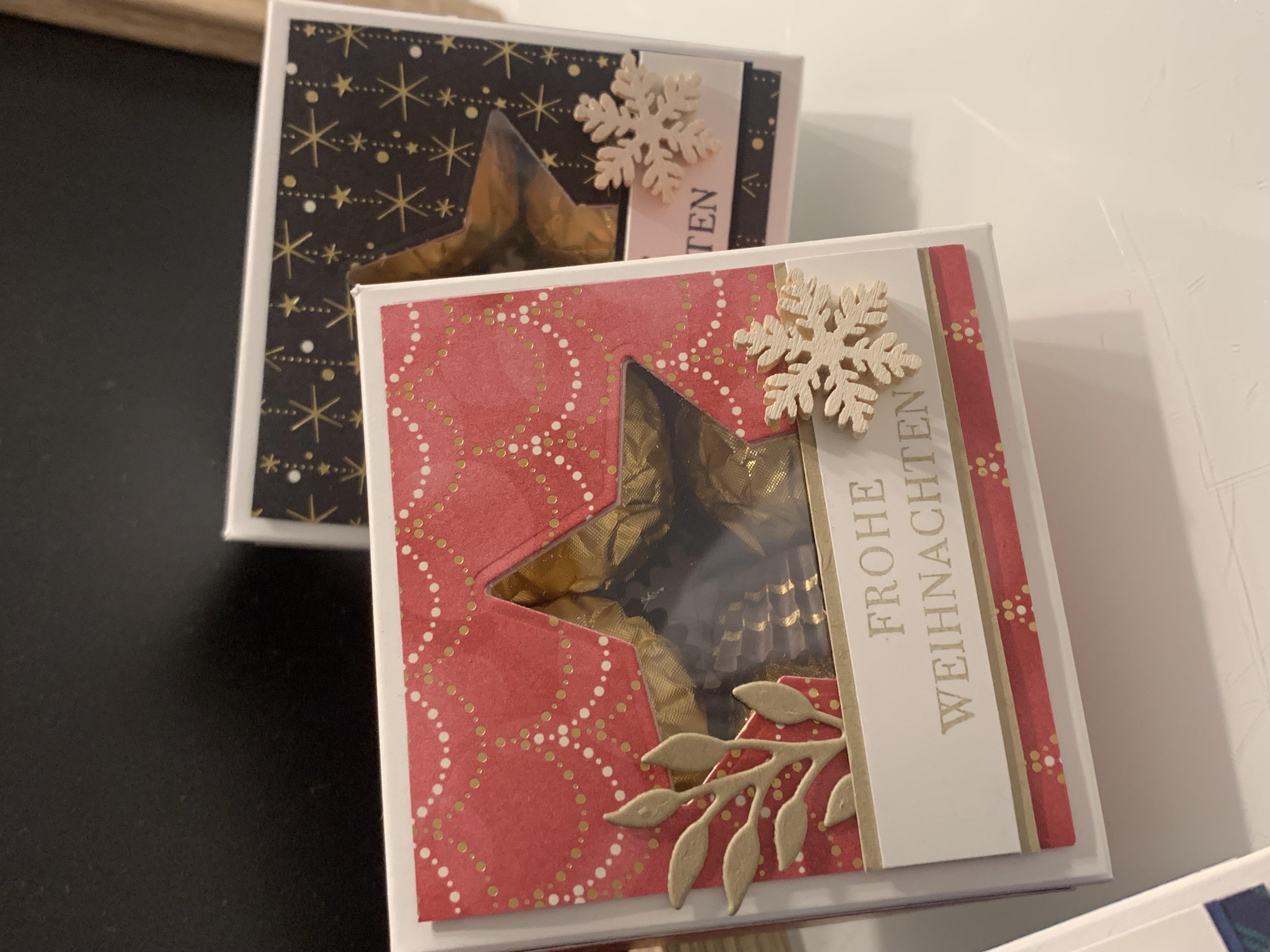 Die liebe Margit hat bei mir auch heuer wieder hübsche Verpackungen bei mir bestellt, um Lebkuchen an ihre Kunden zu verschenken. Diese aufschiebbaren Rahmenboxen habe ich daher für sie angefertigt und ich hoffe sie werden auch heuer wieder ihren Kunden Freude bereiten. Herzlichen Dank für deine Bestellung!!